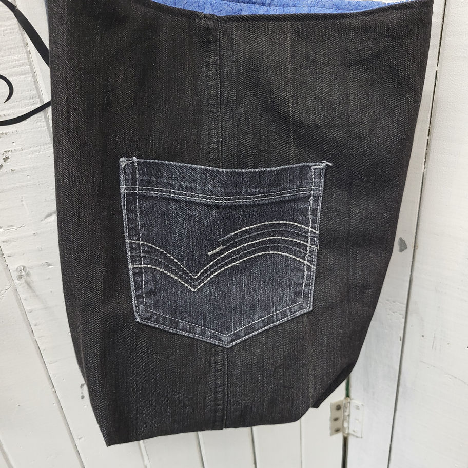 Sac tout usage fait de jeans recyclé bleu, noir et brun.